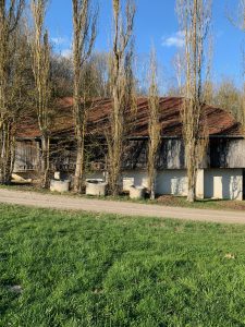 In der Nähe von Landshut liegt das Anwesen von Fritz König. Dort, in Ganselberg, waren nicht nur sein Wohnsitz und sein Gestüt, sondern auch sein Atelier. Auch wenn das Atelier scheinbar wie ein historisches Gebäude aussieht, sieht man doch bei genauerem Hinsehen Betonfundamente, skulpturale Plastizität der Türbeschläge und strengen Formwillen in den eisernen Bändern, die die Türflügel halten.