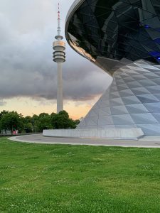 Die grandiose Architektur des Olympiageländes von 1972 und die imponierende Fassade der BMW Welt sind Gestalt gewordene Hoffnung, man könne das Lebendige mit dem Technischem versöhnen und eine Synthese schaffen zwischen zwei Welten, die so nicht zueinander passen. Vielleicht ist es auch eine Illusion, da die Perfektion des Technischen dem Lebendigen wenig Raum läßt, aber gleichzeitig dessen emotionale Formen übernimmt. Das Werksviertel, das jetzt im Bau ist, möchte die Subkultur, die kurzfristig dort ansässig war, integrieren und ihr eine neue Heimat bieten, in der sie mit der geplanten neuen Konzerthalle einen Biotop des Lebendigen schafft.